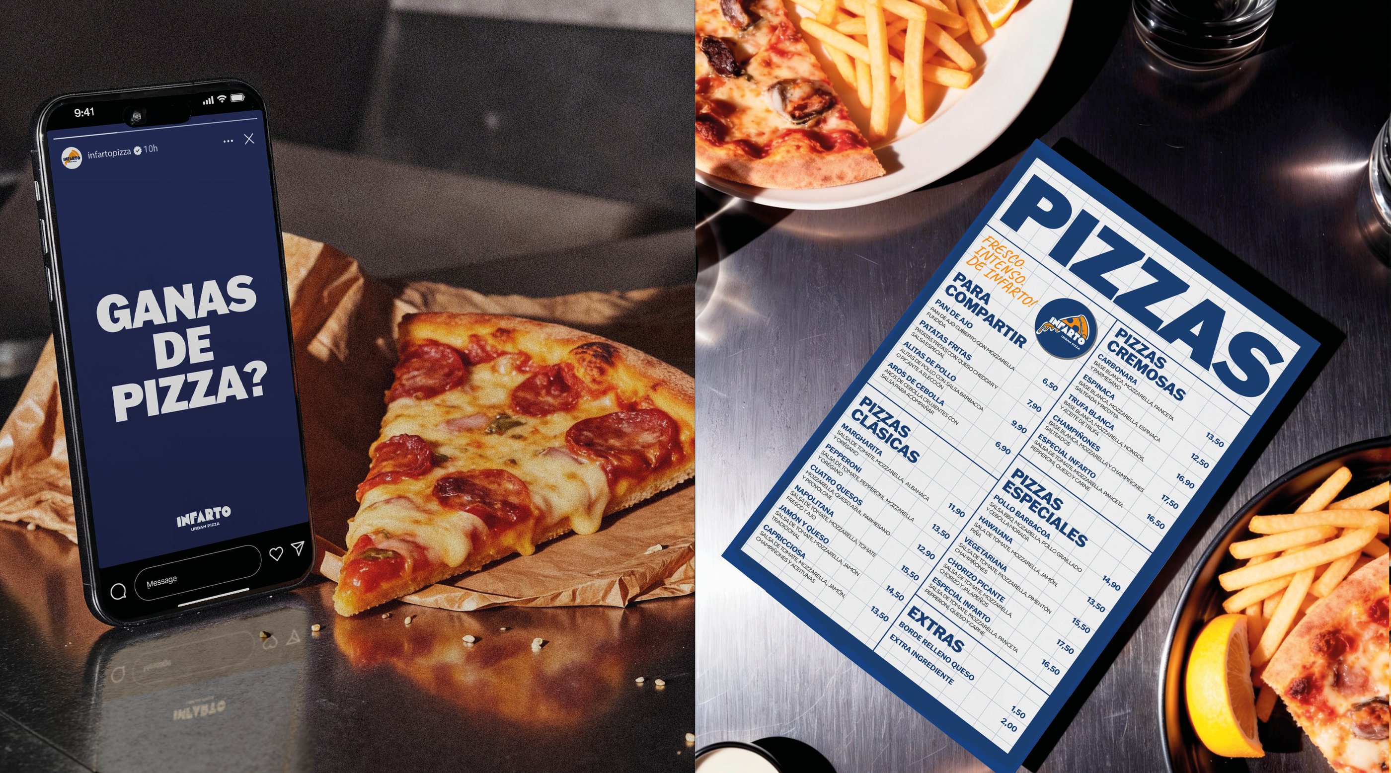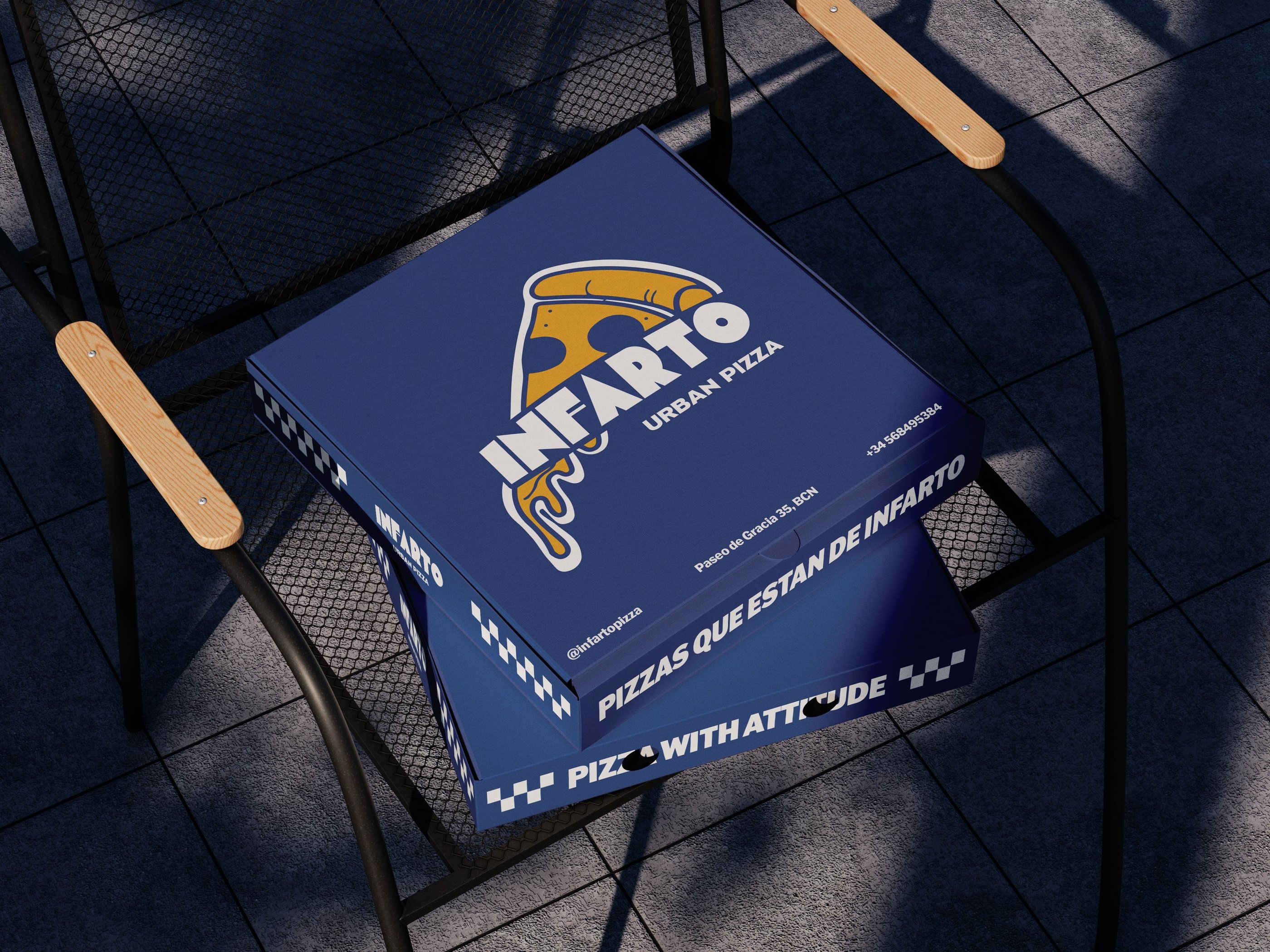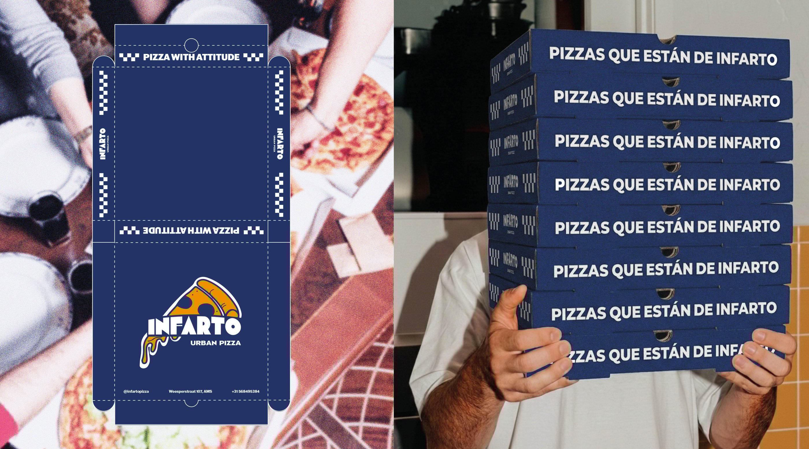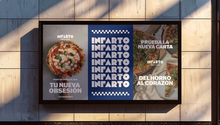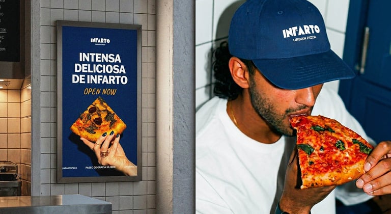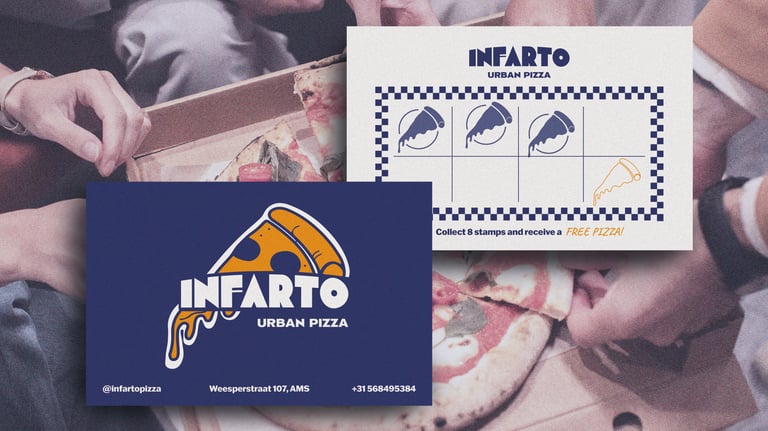 Infarto is an urban pizzeria identity inspired by the rhythm and energy of city life, where food is simple, bold and full of character.